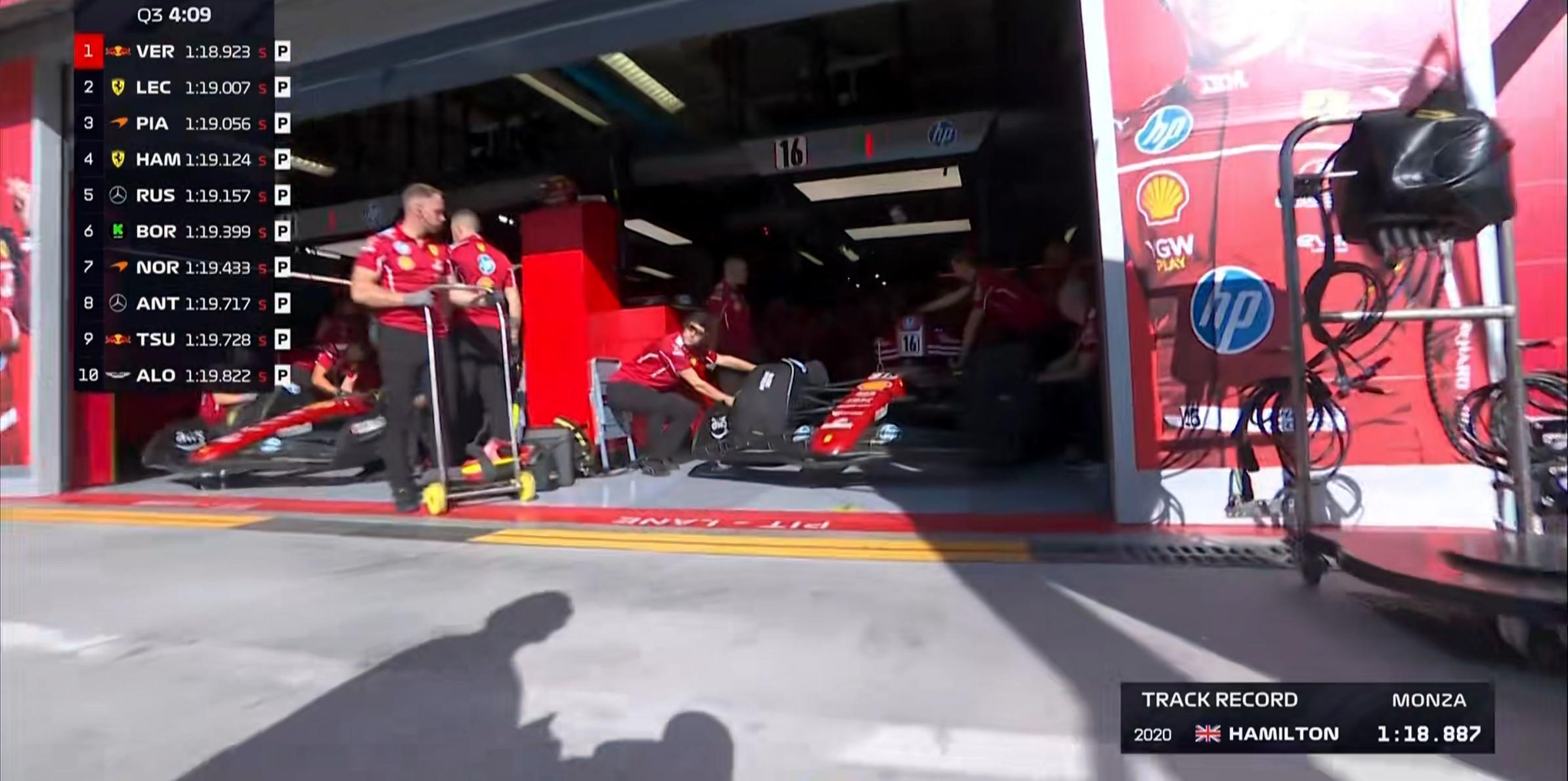 蒙扎赛道的纪录由汉密尔顿在2020年驾驶W11所创造,这一纪录能否保持将在5分钟后揭晓;